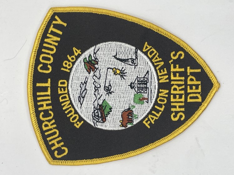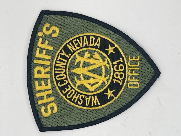 Black patch with silver text