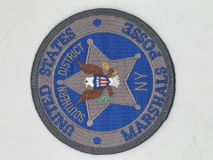 Black patch with black text on white banner and white crown topper